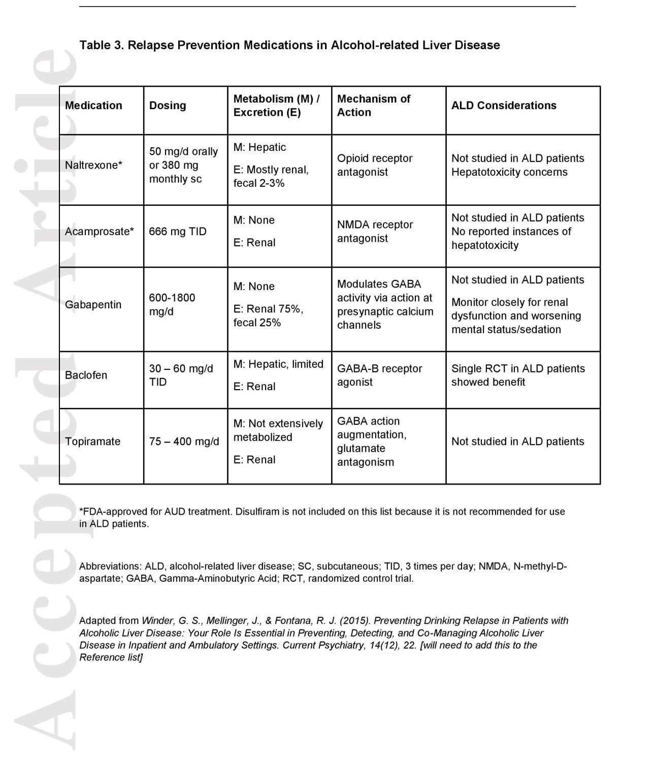 64 Weinrieb RM, Van Horn DHA, Lynch KG, Lucey MR. A randomized, controlled study of treatment for alcohol dependence in patients awaiting liver transplantation. Liver Transpl . 2011;17(5):539 –547.