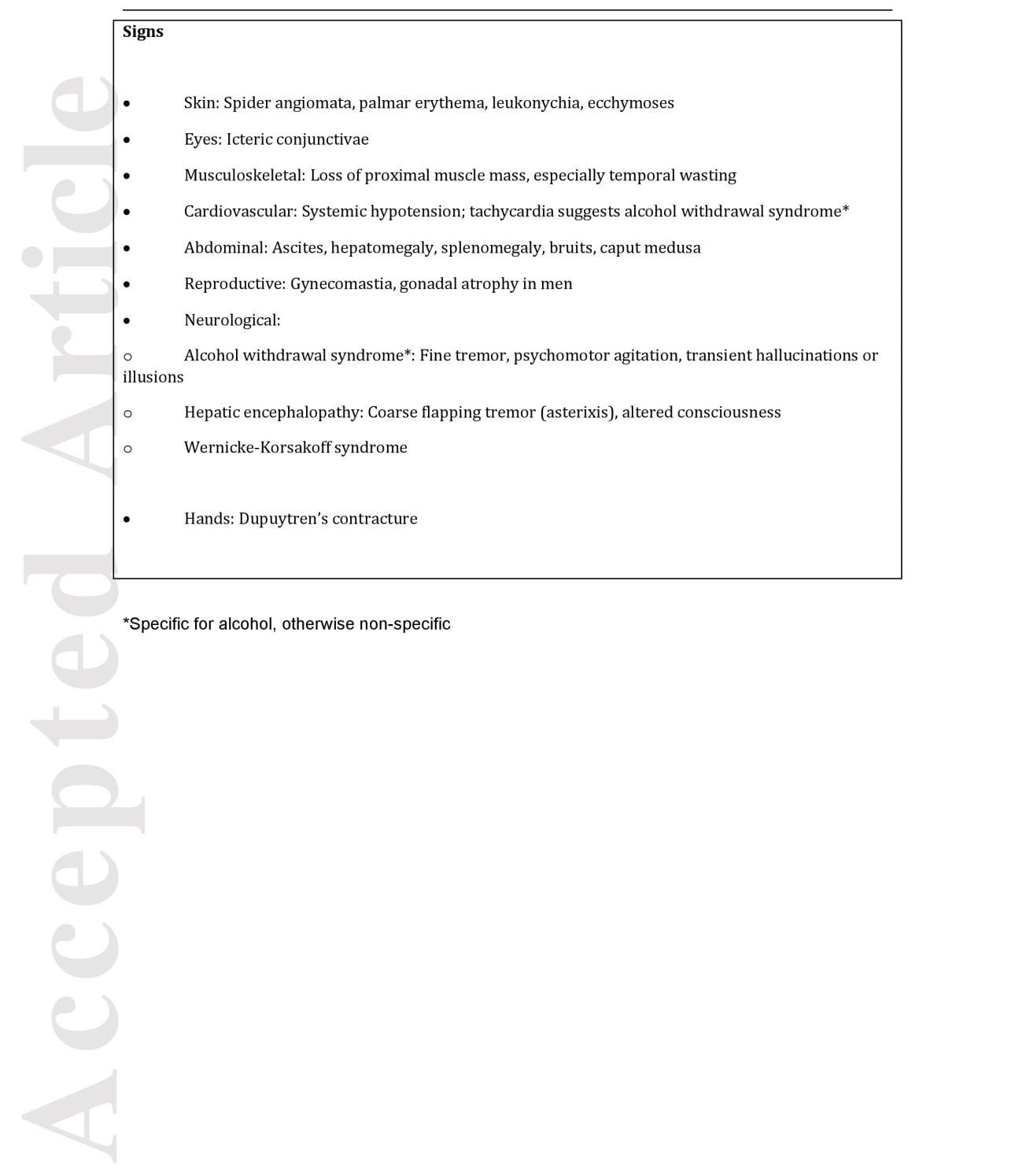 153 Verrill C, Markham H, Templeton A, Carr NJ, Sheron N, et al. Alcohol -related cirrhosis—early abstinence is a key factor in prognosis, even in the most severe cases. Addiction. 2009;104(5):768 – 774.