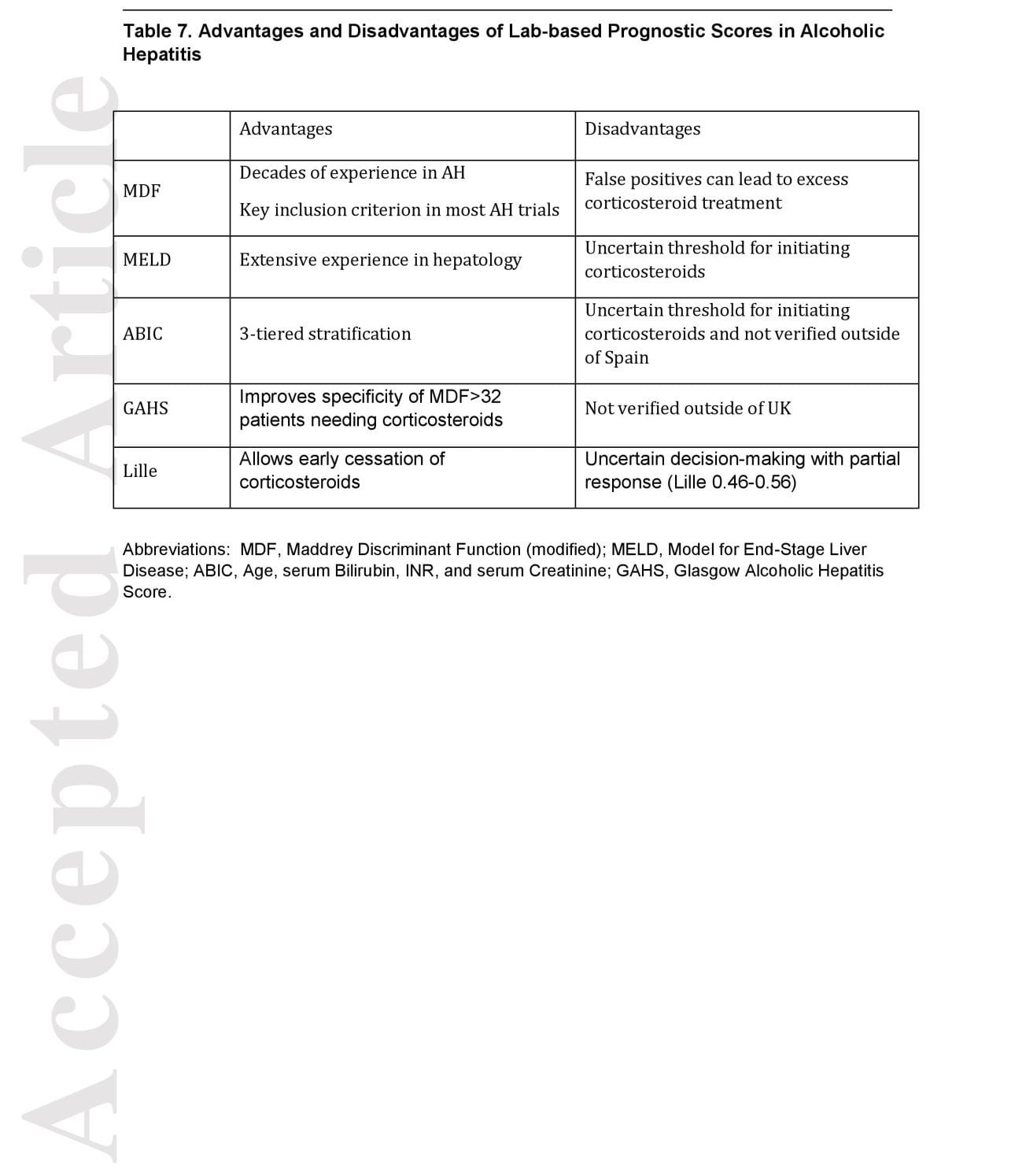 149 Louvet A, Labreuche J, Artru F, Bouthors A, Rolland B, Saffers P, et al. Main drivers of outcome differ between short term and long term in severe alcoholic hepatitis: A prospective study. Hepatology. 2017;66(5):1464 -1473.