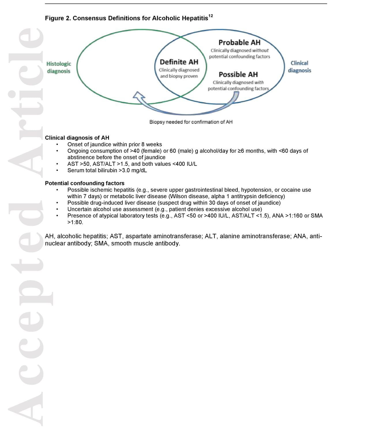 1 Mathurin P, Lucey MR. Management of alcoholic hepatitis. J Hepatol. 2012;56 Suppl 1:S39 – S45.